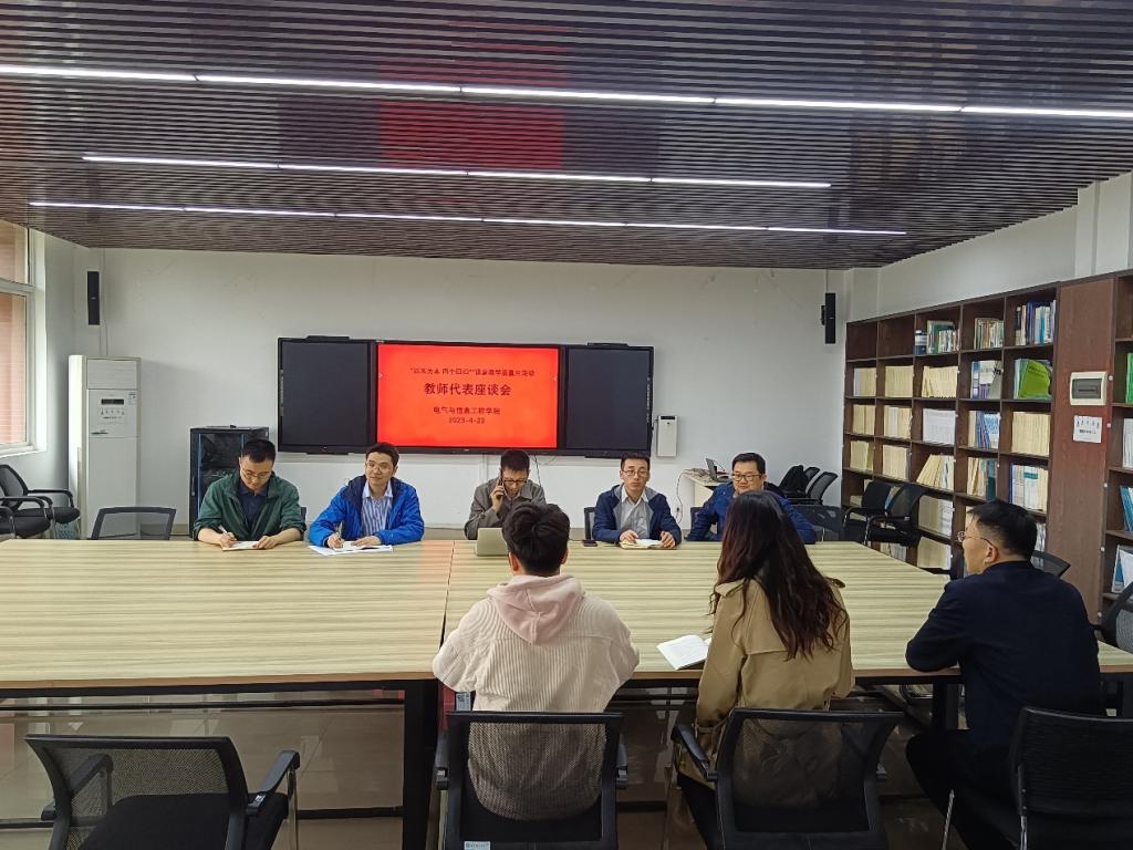根据《关于开展 “以本为本 四个回归”课堂教学质量月活动的通知》精神与《电气与信息工程学院2023年春季学期课堂教学质量月活动工作方案》,4月23日下午在工一B402分别召开了学风教风主题学生代表座谈会、教师代表座谈会,会议由由质评办主任谢七月老师主持。