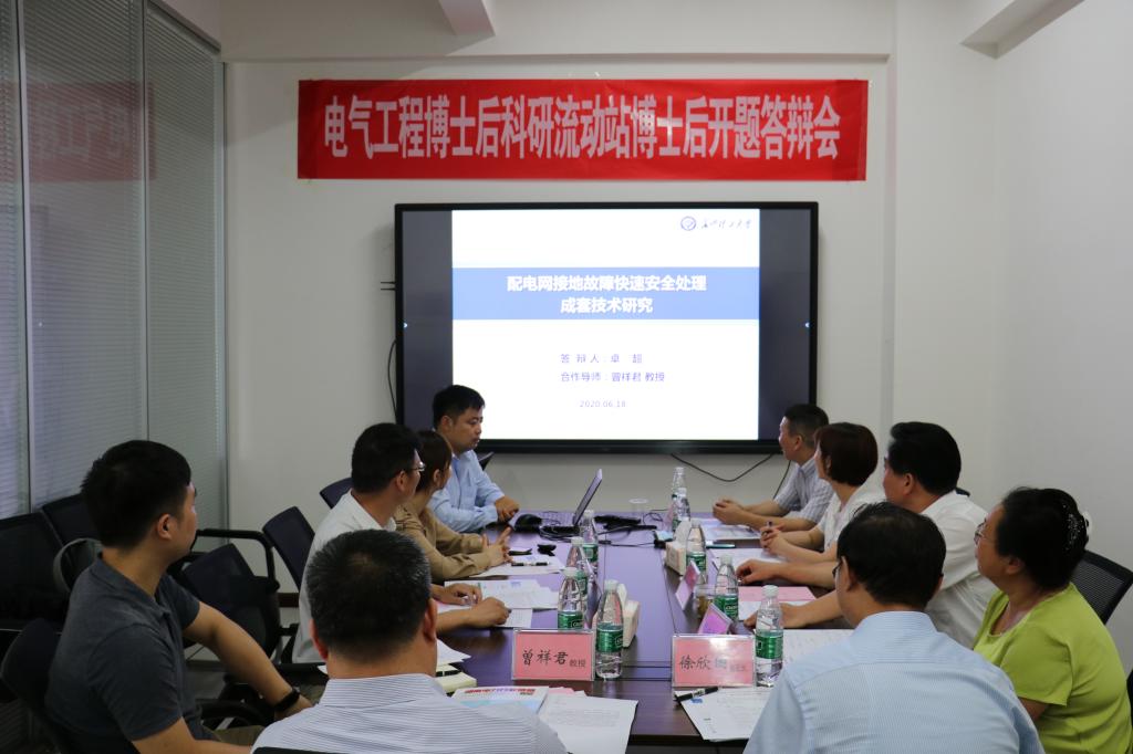 6月18日上午,电气工程首位博士后开题答辩会在新能源大楼2栋326室举行。答辩会邀请了国网湖南省电力公司漆铭钧高工担任答辩组长,电气与信息工程学院曾祥君教授、樊绍胜教授、李泽文教授、周任军教授担任答辩专家,湖南省专家服务中心李静思主任、喻晔科长指导开题工作,会议由太阳成集团tyc122cc入口人事处徐欣国副处长主持。