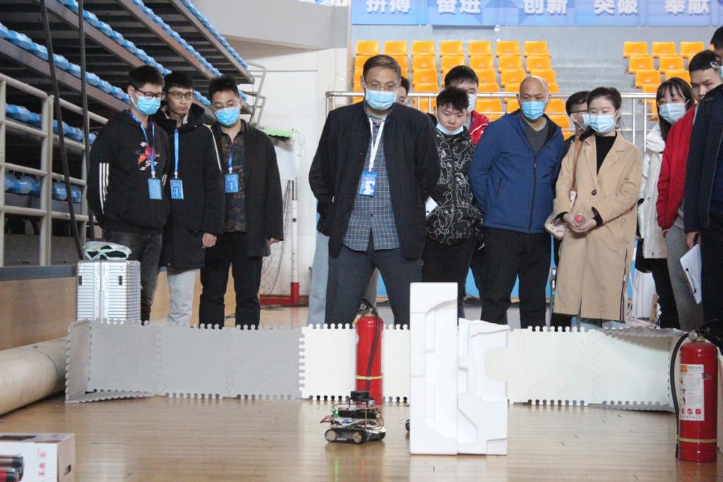 竞赛分为作品初评、现场展示、答辩评审三个环节。在作品展示现场,评审专家们观摩、测试作品,认真严谨地进行评审。场面热闹非凡,同学们精彩的作品也吸引了不少老师和同学们驻足观看。开放式命题与设计的作品既有防疫新形势下的室外消毒、防疫智能巡检等类型机器人,也有服务湖南“三高四新”发展战略的各类科技成果,涉及人工智能、物联网、智能制造、无人机、工业机器人和大数据等多个前沿领域,涵盖了电路设计、系统集成和算法研究等不同设计层次。经过激烈角逐,大赛共评选出团体一等奖 11 项、二等奖 16 项、三等奖 27 项。