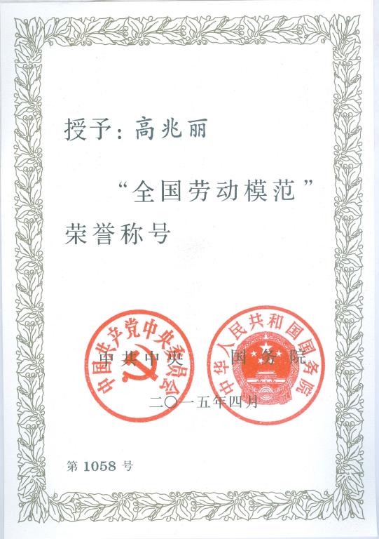 如今,高兆丽已经从一名普通的继电保护人员成长为全国电力行业继电保护专业领军人才。她获得了“中央企业劳动模范”、“国家电网公司检修专业领军人才”、“国家电网公司优秀班组长”、“山东省女职工建功立业标兵”、“山东省首席技师”、“济南市三八红旗手”、“省公司第七届十大杰出青年”、“省公司青年岗位创新能手”、“省公司优秀班组长”、“济南公司十大杰出青年”、“全运保电先进个人”等荣誉称号。