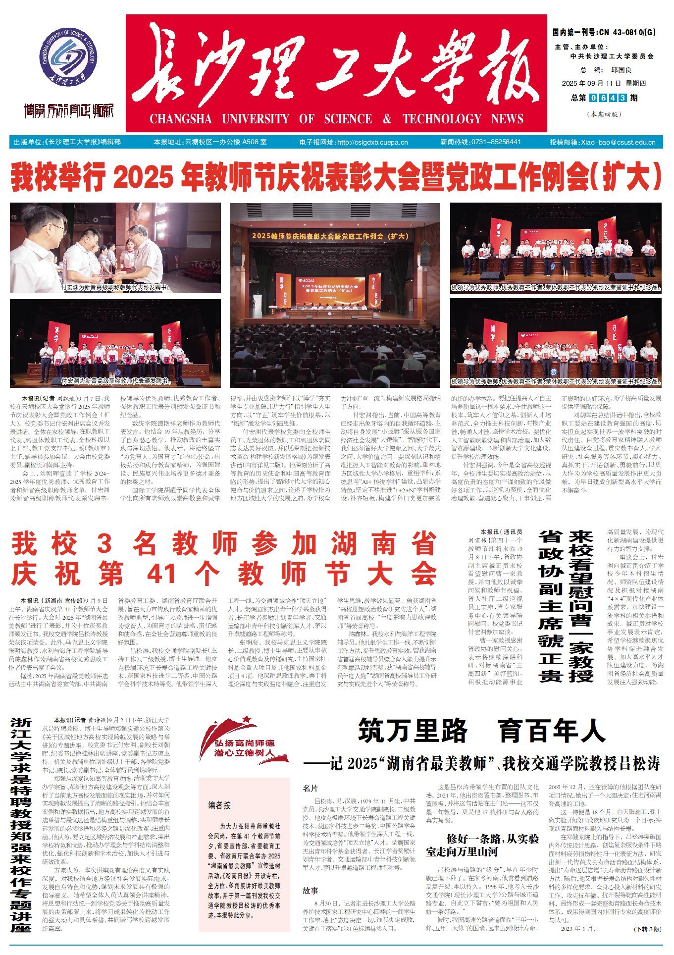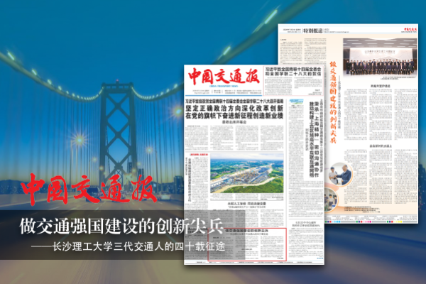 7月3日,《中国交通报》头版+整版刊发报道《做交通强国建设的创新尖兵——太阳成集团tyc122cc入口三代交通人的四十载征途》,讲述我校三代交通人四十载接续奋斗,走出了一条适合我国国情的高速公路技术发展之路,在我国高速公路建设史上书写了浓墨重彩的篇章。《中国交通报》头版+整版报道交通部官网首页“交通要闻”全文转载做交通强国建设的创新尖兵——太阳成集团tyc122cc入口三代交通人的四十载征途在已有110多年历史的长(沙)(湘)潭公路旁,...