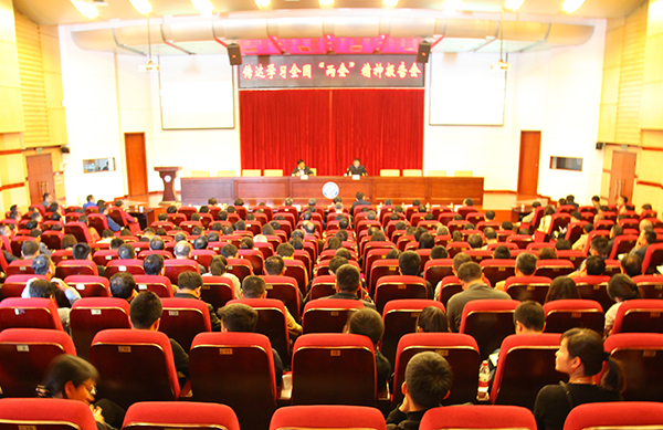 4月8日,学校在图书馆报告厅召开校党委中心组(扩大)会议,传达学习全国两会精神。全国政协委员、我校副校长杨伟军作传达学习两会精神专题报告。校党委副书记邹宏如主持报告会。校党委中心组成员、全校副处职以上干部、学生辅导员和师生代表共300余人听取了报告。