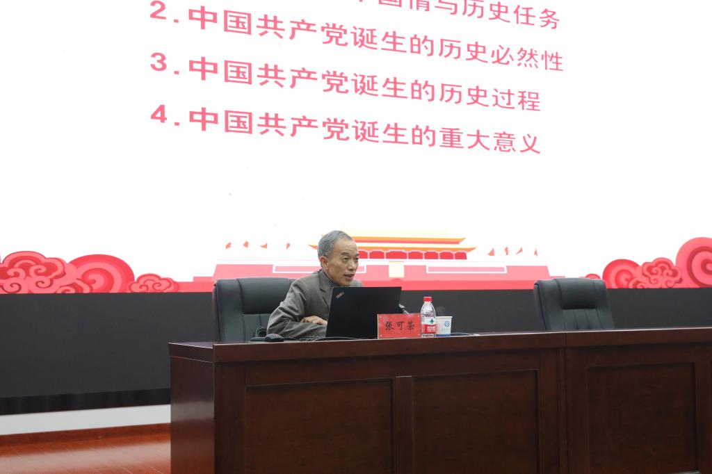 启动仪式上,党史研究和党建实践专家、我校马克思主义学院教授张可荣应邀作题为《红船这样起航》的党史学习辅导报告。