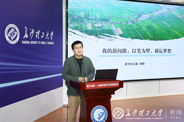 在“新锐青年说”活动环节中,新华社湖南分社经济采访部主任周楠以《我的新闻路:以笔为犁,耕耘梦想》为题,分享十三年从业生涯中的难忘片段,用喜悦、哭泣、温暖、危险、振奋等关键词为切入点,还原报道现场,将幕后故事娓娓道来,并寄望在座青年能绽放理想之花,扬帆远行,抵达梦的彼岸。新华社湖南分社对外部主任张玉洁以《捕捉时代缩影,传播中国声音》为题,结合自身新闻调查经历,分享从业生涯所见所闻,生动展现了新闻报道所传递出的巨大社会效能与现实力量。她用“追光的人终会光芒万丈”寄语在场学子能不畏风雨勇敢追光,在新时代之下能有新作为、展现新形象、做出新贡献。在现场交流提问互动环节,两位记者就如何掌握新闻专业知识,提升新闻捕捉能力、维护新闻理论、坚守新闻职业理想等为同学们作出详细解答。