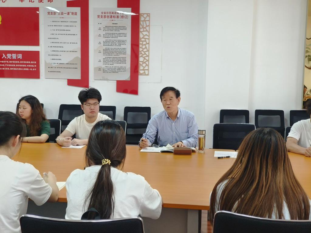 大家紧紧围绕党员如何发挥先锋模范作用、党支部的战斗核心作用、如何助力校风、学风建设、如何践行人生生涯规划、金盆岭校区当前存在哪些有碍学风建设的作风和现象等议题进行了热烈讨论。王乃厚对学生党员的发言一一做出了回应,他希望同学们要牢记自己党员身份、责任和义务,听党话、跟党走。要有理想、有信念,积极向上。在“三会一课”、主题教育中要结合本班实际活学活用,多运用实例,用喜闻乐见的形式增强吸引力,让学习活动更丰富多彩、更具吸引力。要践行自己的人生规划,在考研、考公(选调)、就业的问题上,要结合自身的实际、优势特长进行决策。针对国家需求大环境,首先要端正态度,把国家利益摆进去,着眼长远,不能随大流、好高骛远。党员在学习、工作、生活中要有旗帜意识,勇于开展批评与自我批评。