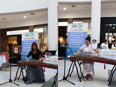 表演模块由歌曲、器乐、太极扇、太极剑等组成。整台表演由孔院当地学生任天阔和志愿者张俐霖担任主持。由王凤梅老师伴奏,学生妮娜演唱了歌曲《映山红》;张雪梅老师、王赫老师、张悦侨老师表演的功夫扇吸引了大量观众;当地学生胡茜(Andjela Pekovic)和陈静(Ksenija Perovi?)分别弹奏了古筝乐曲《菊花台》、《青花瓷》;王赫老师和张悦侨老师分别表演了陈氏和杨氏太极剑;田聪老师表演了古典舞蹈《思美人兮》。 令人欣喜的是,有几位中国游客加盟到孔院活动里来,用专业歌喉和孔院全体老师倾情演唱《我和我的中国》,表达对祖国的热爱,并为祖国70周年生日送上祝福。随后,孔院教师为当地民众准备了中国传统美食——饺子和月饼,让大家品尝,他们纷纷都说好吃、好吃。