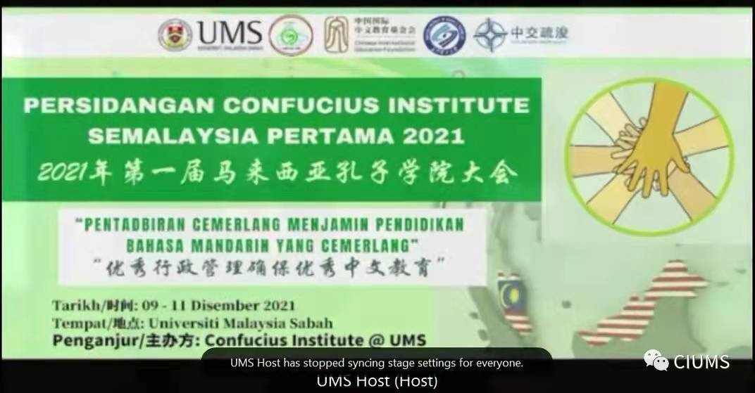 12月9日,第一届马来西亚孔子学院大会在沙巴大学拉开帷幕。本次会议由沙巴大学孔子学院发起并主办,来自马来西亚5所孔子学院和1所孔子课堂的与会人员齐聚沙巴大学,以“优秀行政管理确保优秀中文教育”为主题开展研讨交流。开幕式在线上、线下同时进行,由沙巴大学孔子学院中马双方院长共同主持。