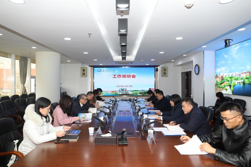 12月13日,省教育厅国际交流处处长周芳友、省公安厅人口与出入境管理局副局长刘建华等一行来我校开展国际学生专项工作联合调研。国际工学院党总支书记王学成、国际工学院党总支副书记、副院长乔法光、保卫部副处长王艳鸿出席会议,国际处处长甘海鹰主持会议。