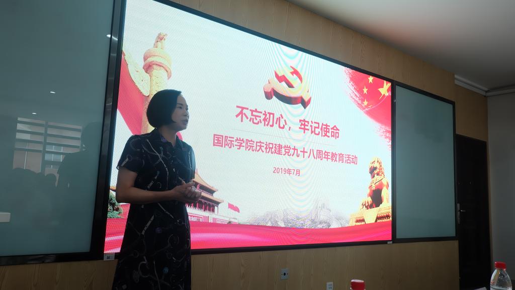 会上,陈瑜结合“不忘初心、牢记使命”主题教育,就学院的发展建设作了发言。她要求大家以此次主题教育为契机,通过学理论、找问题、促整改、抓落实,大力推进学院包括文化、学生工作、中外合作办学项目等在内的全面建设和发展,以新时代的责任与担当擦亮涉外学院的名片底色。