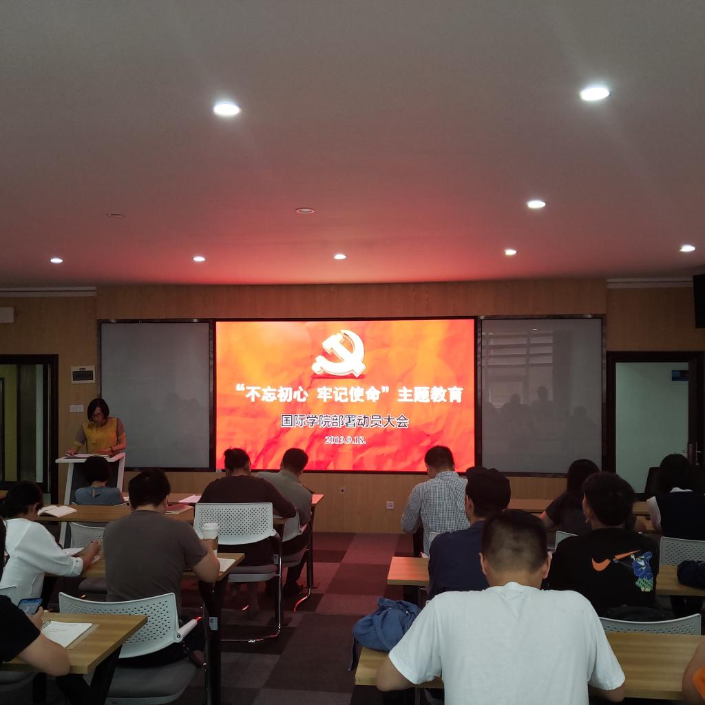 9月18日下午,国际学院在新能源1号楼404教室召开了“不忘初心、牢记使命”主题教育部署动员大会,学院全体师生党员、教职工参加会议。学校党委委员兼学院党总支书记付嫦娥主持会议并讲话。院长陈瑜作发言。