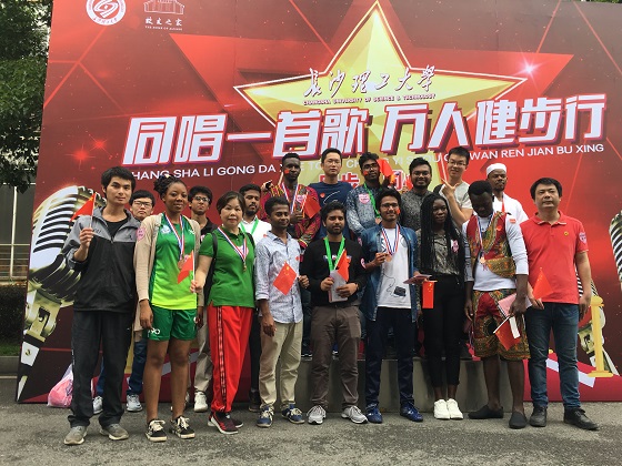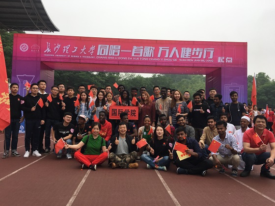 5月18日上午,我校云塘校区上空回荡着激昂的歌声,由校友总会主办的“同唱一首歌万人健步行”活动在这里盛大举行。我院副书记吴振华带领何素芳、唐宏敏、王荟惠、刘森峙老师及部分中国学生和留学生,和全校万余名师生和来自全国各地的200余名校友一同健步走,“我和我的祖国,一刻也不能分割,无论我走到哪里,都流出一首赞歌……”,从体育场出发,依次途径大学生创新创业园、汀香园、模型广场、南门、大会堂、步云桥等服务点,加盖到达章,欣赏由各学生社团带来的风采展示,最后到达终点文化广场。一路欢声笑语、青春洋溢,大家在享受运动的同时抒发着对学校、对祖国的浓浓爱意。