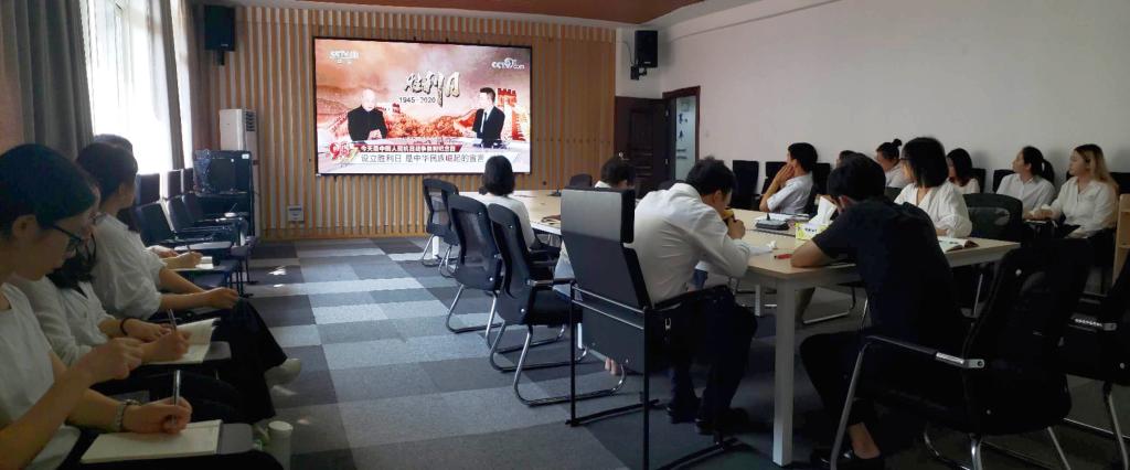 铭记历史,勿忘国耻,珍爱和平,开创未来。2020年9月3日是中国人民抗日战争暨世界反法西斯战争胜利75周年纪念日。当日上午,院党总支组织全体党员、教职工在会议室集中收看习近平等党和国家领导人向抗战烈士敬献花篮仪式电视直播。在胜利日,大家一起以史为鉴,缅怀先烈。