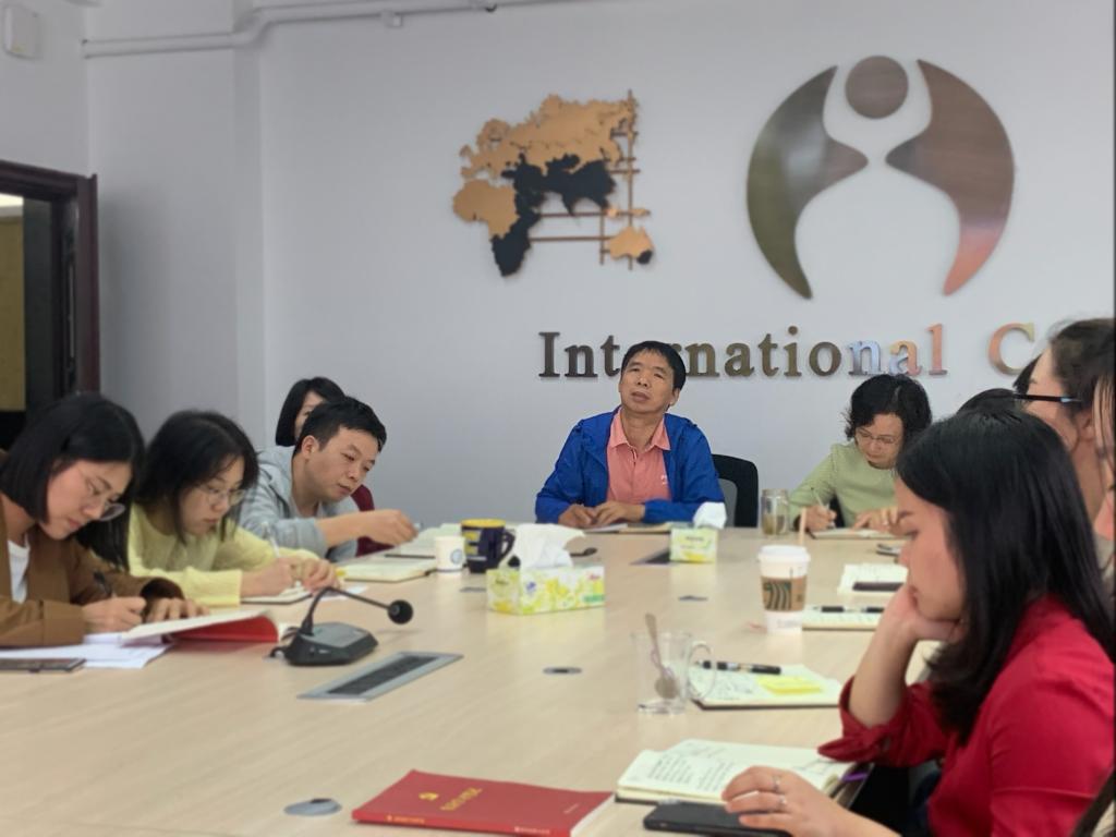 为学深悟透《习近平谈治国理政》第三卷、《习近平总书记教育重要论述讲义》和《中国制度面对面》,9月22日下午,国际学院党总支书记刘安生在院416会议室组织召开教职工暨中心组(扩大)学习会议。院中心组成员、全体教职工参加学习。