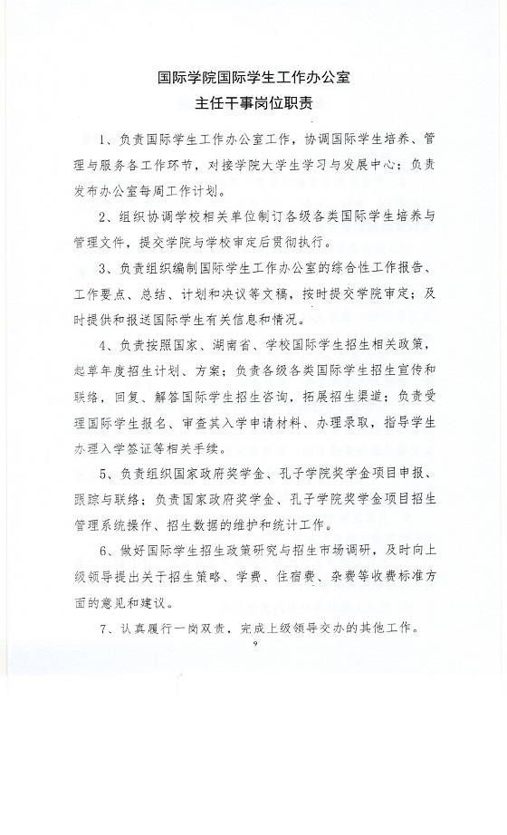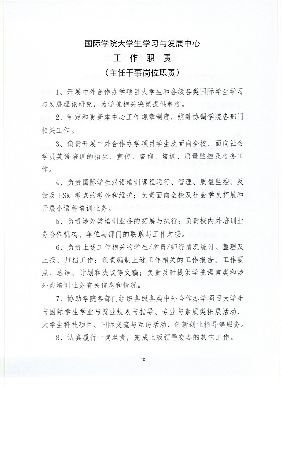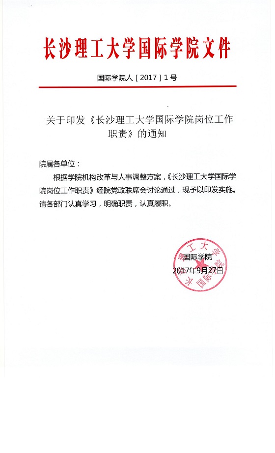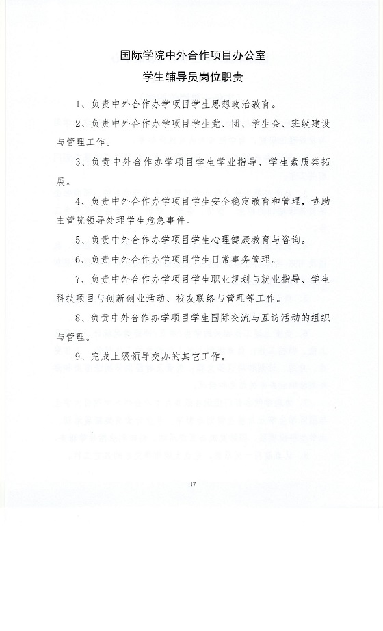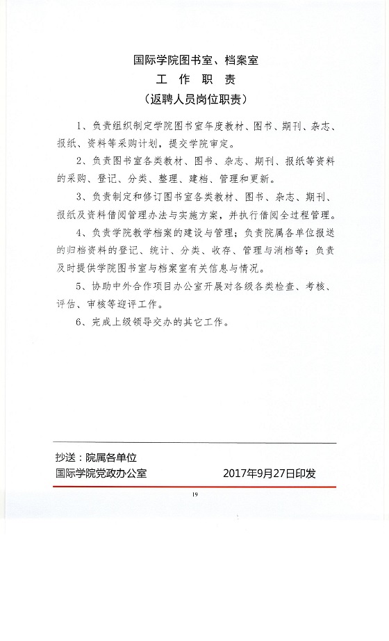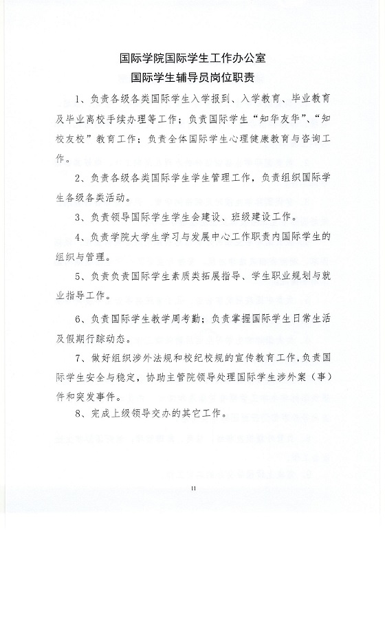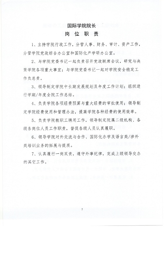 关于印发《太阳成集团tyc122cc入口国际学院岗位工作职责》的通知