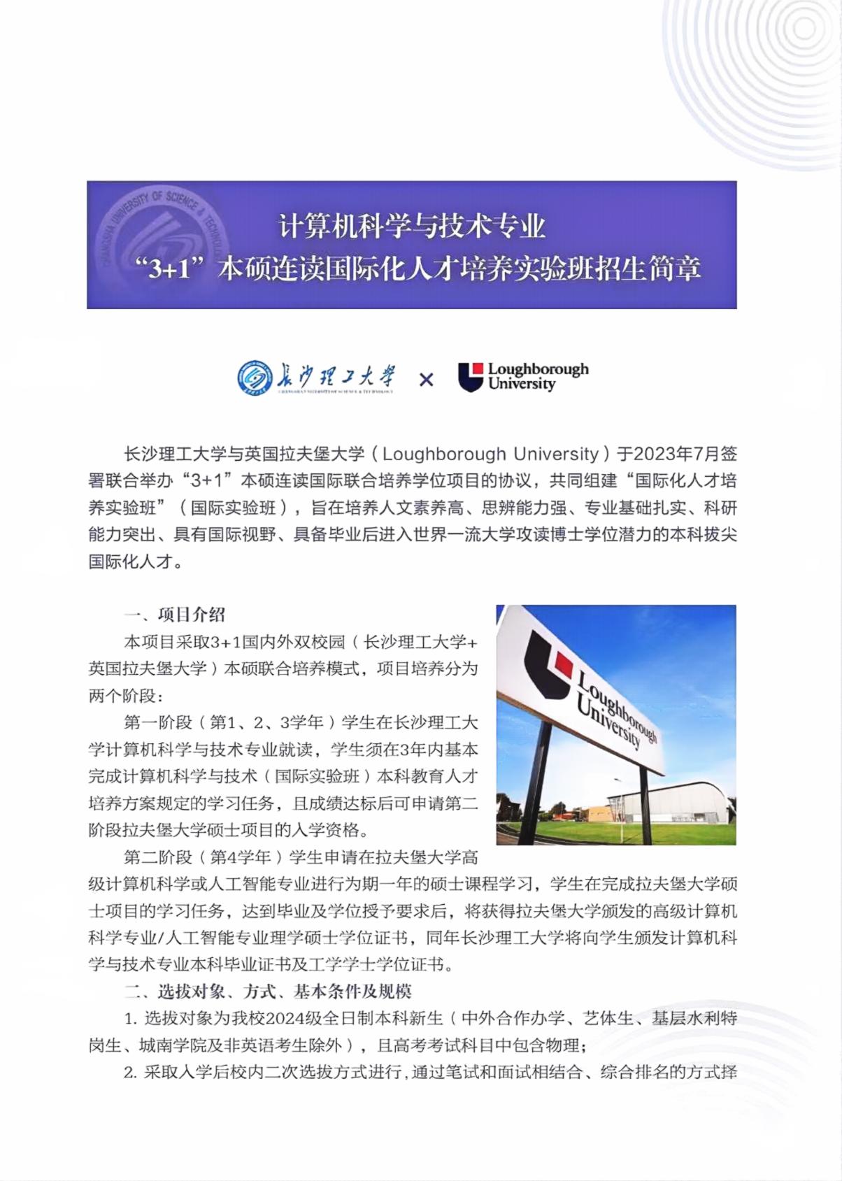 太阳成集团tyc122cc入口计算机科学与技术专业“3+1”本硕连读国际实验班招生简章