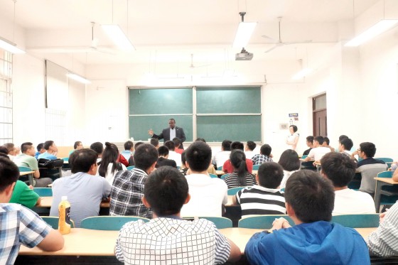 交流会上,美国田纳西大学查塔努加分校代表Owino博士向全体2016级新生表达了热烈的欢迎和诚挚的问候,介绍了查塔努加分校的基本情况。随后,Owino博士就同学们关心的学业规划、课程开设计划、中美教育情况等方面的问题进行了详细解答和交流,他希望同学们努力学习,培养国际化思维,为后期进入留学国家学习打下坚实的基础。