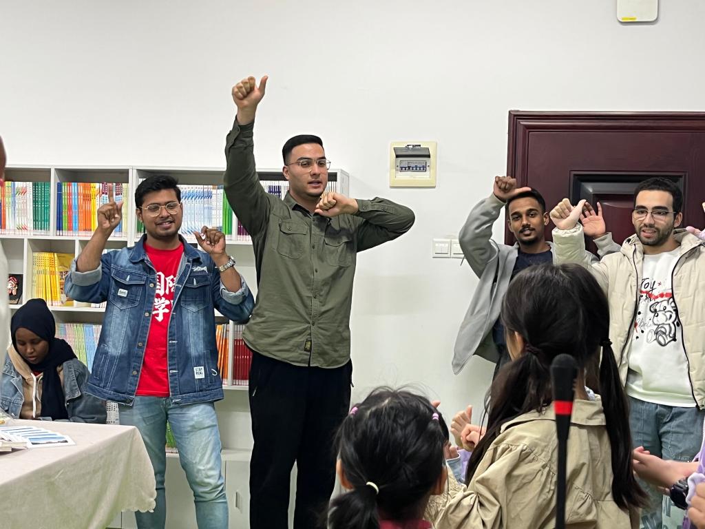 10月5日下午,学院分工会邀请一群留学生志愿者为孩子们举办英语角活动。志愿者们对活动内容进行了精心设计,耐心引导每个孩子用英语进行交流,教唱趣味英文歌曲、舞蹈与绘画,进行各种游戏。孩子们兴趣盎然,积极参与,场上英语与笑声齐飞,氛围热烈。