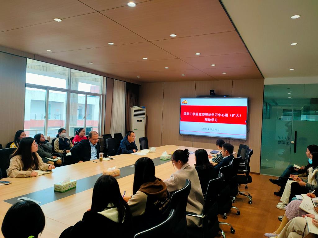 11月26日下午,院党委理论学习中心组(扩大)在文科楼E502会议室开展集中学习研讨,院党委书记黄自力主持学习,院党政班子成员、支部书记、科室主任和教师代表参加学习。