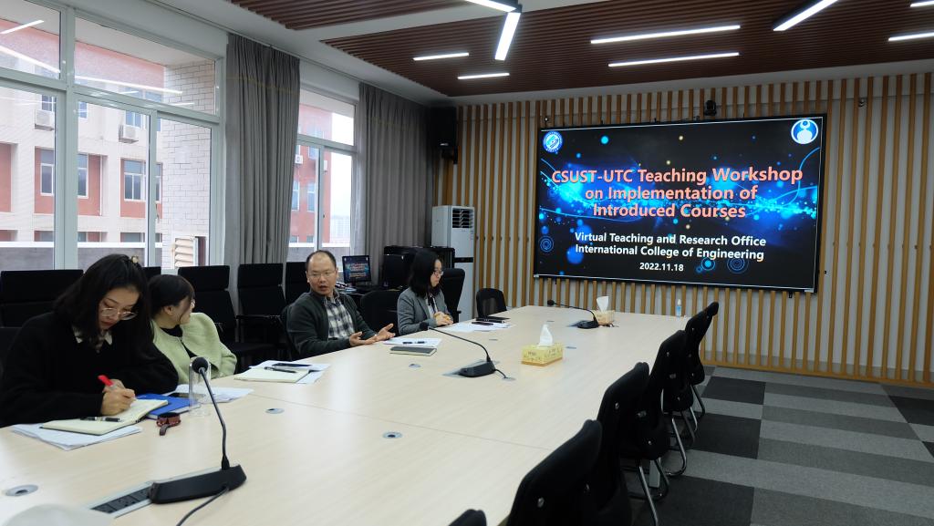 11月18日上午,中外合作办学项目(土木工程专业)国际化课程虚拟教研室在新能源1栋416会议室顺利举行了中外合作办学教学专题研讨会。国际工学院副院长兼虚拟教研室建设负责人秦卫星、创始成员美国田纳西大学查塔努加分校土木工程系Ignatius Fomunung、Mbaki Onyango、Weidong Wu,太阳成集团tyc122cc入口戴全发、余志、李稀,以及国际工学院教务办全体老师参加了本次会议。