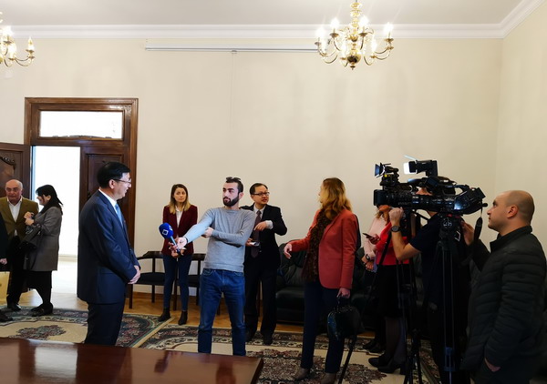 (17, November) At the Georgia-China Friendly Exchange Association, the delegation was received by Ivane Chkhartishvili, former vice prime minister of Georgia, and head of the Association. The two parties discussed possible people-to-people exchange and educational collaboration.