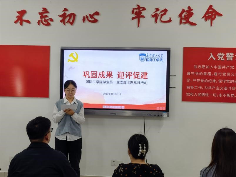 近日,国际工学院学生第一、二党支部围绕“巩固成果,迎评促建”主题,分别在新能源大楼一栋404、424报告厅开展学生党支部主题党日活动。