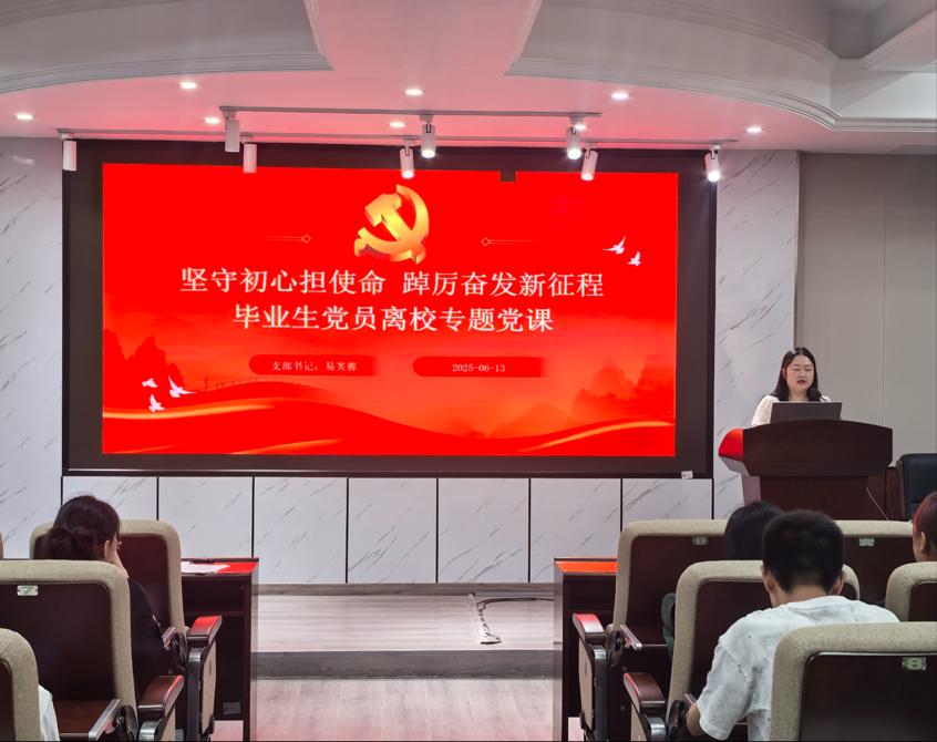 活动开篇,全体党员集中观看党员教育片《党在新时代的徙木立信之举》,该片以新时代党的公信力建设为核心,生动诠释“立信于行”的实践逻辑。支部书记易芙蓉、唐宏敏围绕“毕业生离校前党性教育”讲授专题党课,结合毕业季特点,党课聚焦“责任传承”与“服务延续”,既有理论深度,又贴合毕业实际,为在场的学生党员注入“离岗不离责、离校不离心”的精神动力。各支部支委代表围绕支委换届分享经验,内容聚焦候选人选拔机制、换届流程规范、新老班子责任交接等实操话题