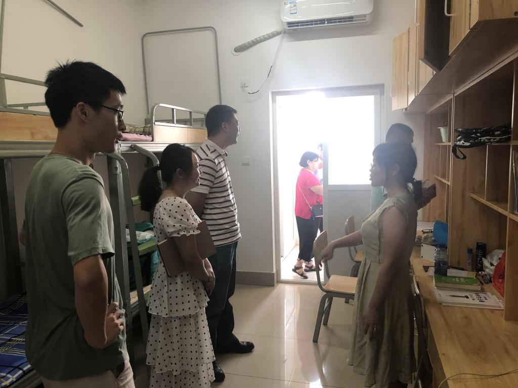 为了解新生情况,帮助新生尽快适应大学生活,付嫦娥书记、吴振华副书记来到新生宿舍,与学生及家长们亲切地进行交流,告知学生要努力提高英语水平,以适应中外合作办学项目专业的学习。学院领导仔细询问学生进校后的适应情况,鼓励新生以积极的心态尽快适应大学校园生活,并提醒新生要注意宿舍用电安全、外出交通安全、人身安全、财产安全等安全问题,叮嘱新生有困难可以向辅导员、学院反映。
