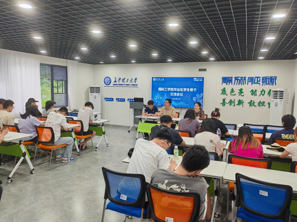 为扎实做好毕业季各项工作,充分发挥学生骨干的桥梁纽带作用,6月10日15点30分,国际工学院在学生公寓“一站式”育人社区召开2025届毕业生学生骨干交流会。学院党委副书记兼副院长黄黎明、2025届毕业生辅导员魏涛、就业辅导员唐宏敏及各班毕业生骨干代表参会。