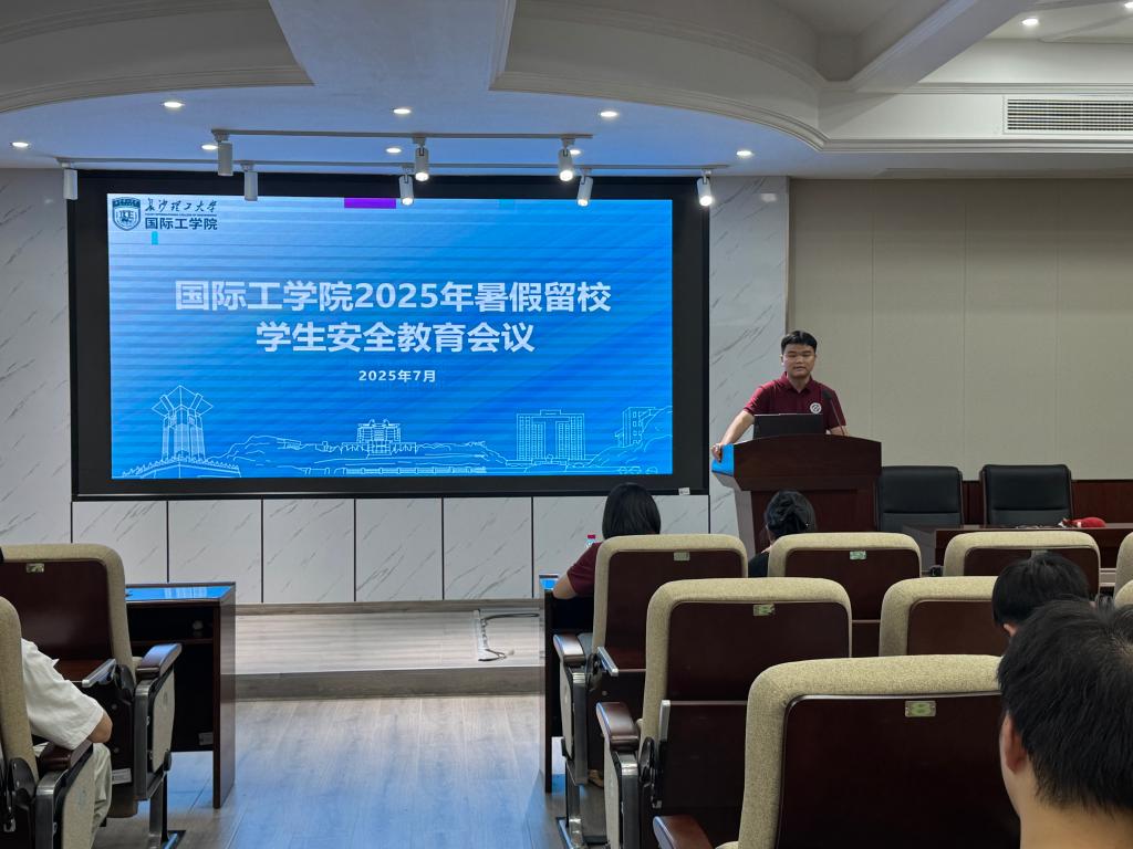 为切实做好暑假期间留校学生教育管理工作,确保学生度过一个安全、充实的假期,7月7日下午,国际工学院于文科楼D207报告厅召开了2025年暑假留校学生安全教育会议。学工办辅导员、全体留校学生参加,会议由辅导员魏涛主持。