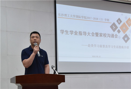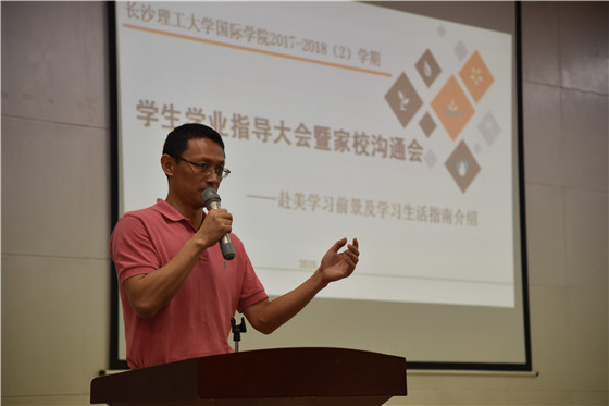 5月14日上午,国际学院2017-2018(2)学期学生学业指导大会暨家校沟通会在云塘校区文科楼圆厅顺利召开。此次会议邀请我校中外合作办学项目(土木工程专业)美方合作院校田纳西大学查塔努加分校工程与计算机科学学院土木工程系教授Ignatius Fomunung,美国田纳西大学诺克思维尔分校教授Huang Baoshan,美国肯尼索州立大学教授Yang Jidong作为主讲嘉宾,就学生赴美学习前景及学习生活指南进行介绍。国际学院院长陈瑜教授、中外合作办学项目办公室主任黄文卫、辅导员唐宏敏和刘森峙,全院学生及30多位家长代表出席了会议。学业指导大会由学院党委副书记兼副院长吴振华主持。