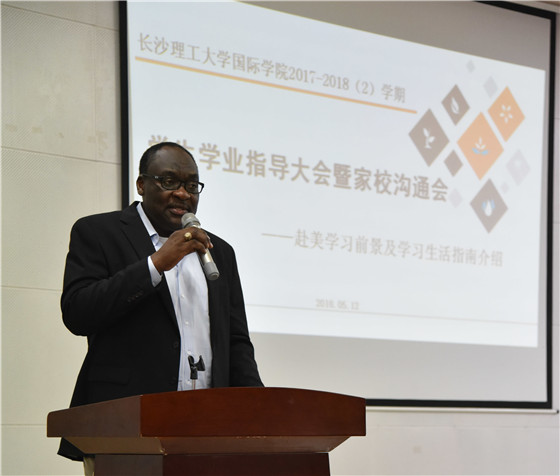 Ignatius Fomunung随后介绍了田纳西大学查塔努加分校优越的地理位置、优美的校园环境及本科生教育特点,从学生活动、科研项目参与度和继续深造学习三方面分析了学生选择在该校学习的优势,并与学生和家长代表就学生赴美后的学习安排、生活指导和安全教育进行了深入交流。