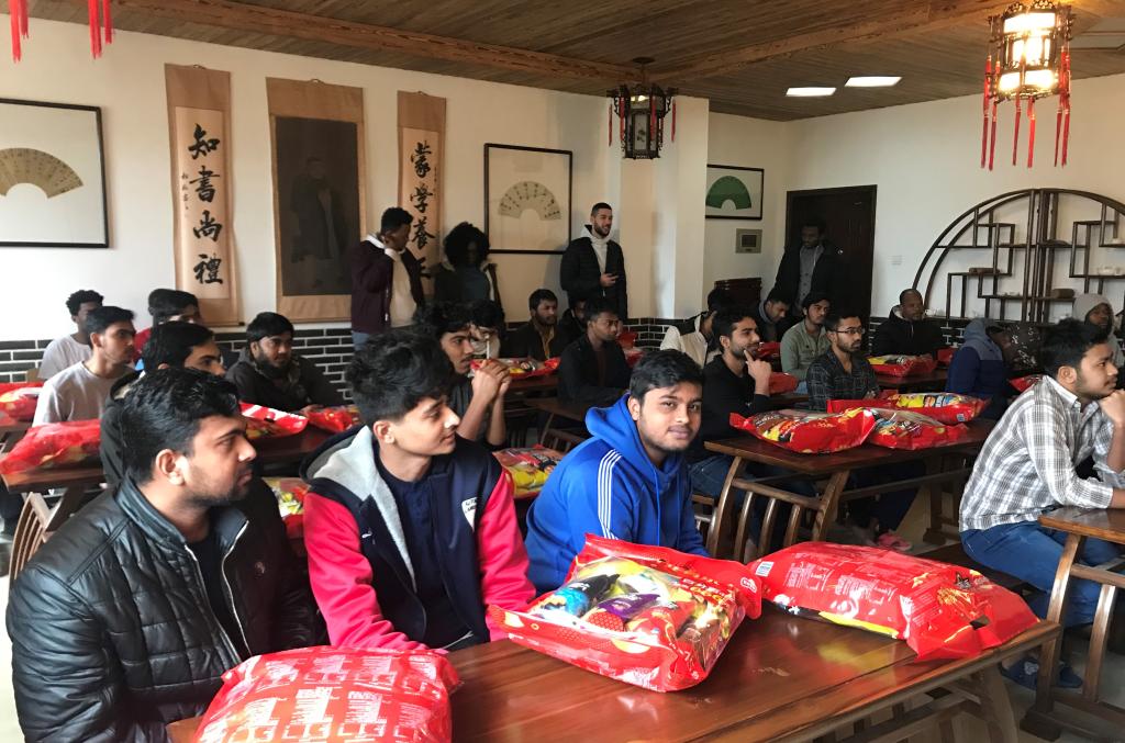 国际学院为寒假留校留学生组织主题班会并发放慰问品