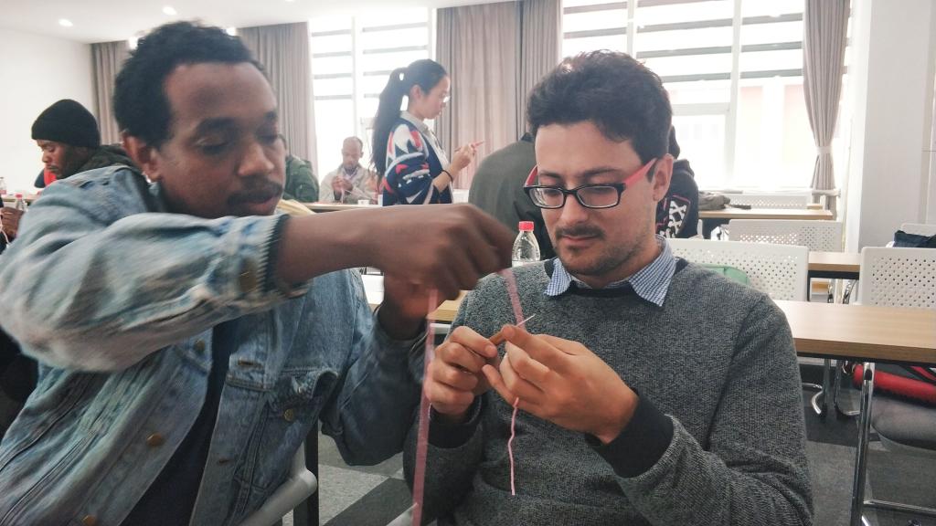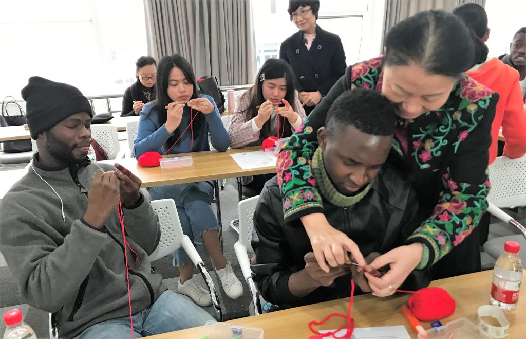培训班上,全国妇女手工编制协会理事、湖南省女红协会副会长欧沛琼带领欧式手工针织工作室的老师们为同学们带来了别开生面的手工教学。国际学院“孔子学院奖学金”、“湖南省一带一路奖学金”和“中国政府奖学金”的留学生,以及外国语学院部分学生志愿者们,参加了此次培训班。同学们在老师的带领下饶有兴致地体验毛线钩编,从不会拿钩针到慢慢地编出一条毛线花边,最后熟练地快速完成一个丝带。湖湘传统文化,在留学生的指尖焕发出崭新的光彩。