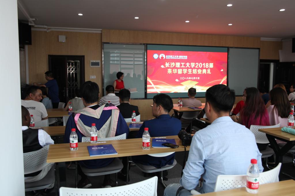 7月10日上午,我校2018届来华留学生结业典礼在国际学院举行。国际学院院长陈瑜、副院长秦卫星、大学生学习与发展中心负责人汤路以及国际学生工作办公室的全体老师出席典礼。结业典礼由学院党委副书记兼副院长吴振华主持。