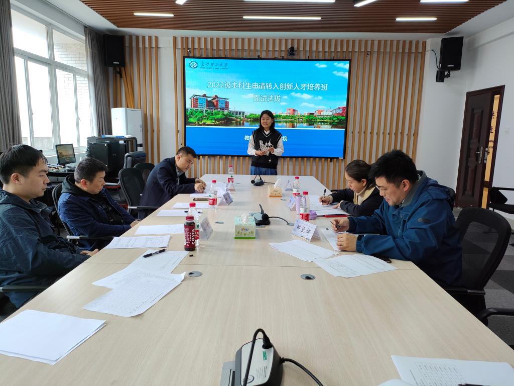 2023年4月6日下午,由教务处副处长蒋菲组织来自教务处、电气、数统、物电、外语、国际等职能部门与教学院的10名专家,召开了2022级创新班转入面试选拔工作会议。本次会议分两组在云塘校区新能源大楼1栋404和416教室同步进行,由教务处副处长邓丰、电气与信息工程学院教授周腊吾分别担任面试专家组组长,对申请转入创新人才培养班初审合格的15名同学进行了现场面试。同学们首先以中英双语进行了精彩的自我介绍,简要陈述了申请转入创新班理由以及未来学业规划。随后专家们从思想道德素质、知识素养、语言表达能力、分析解决问题能力、社会实践经验、创新精神与能力、专业发展规划等方面对学生进行综合评价,以百分制给出面试成绩。经转专业领导小组讨论,确定拟录取学生名单,并完成了学院官网公示及材料上报等系列工作。3位来自数统、电气、国际(土木创新班)3个学院的2022级优秀本科生最终获得入选电气工程及其自动化创新人才培养班学习资格。