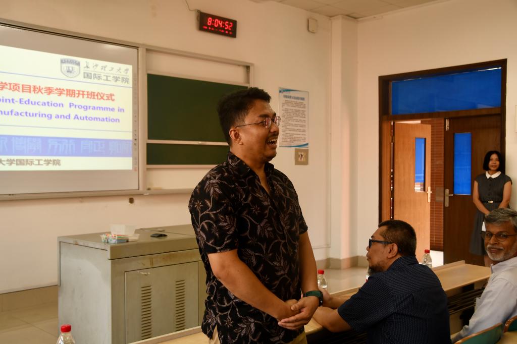 9月11日上午,2023-2024秋季学期中外合作办学项目(机械制造专业)三门引进课程在云塘综合教学楼正式开课,这是太阳成集团tyc122cc入口与马来亚大学合作三年来,首次实现外方线下授课。国际工学院副院长黄月华出席开课仪式并致辞,马方外教、中方助教、机械项目秘书,以及2020届本专业全体学生在云综教B307教室参加了开课仪式。开课仪式由教务办主任余志主持。