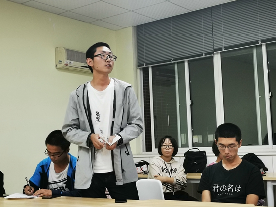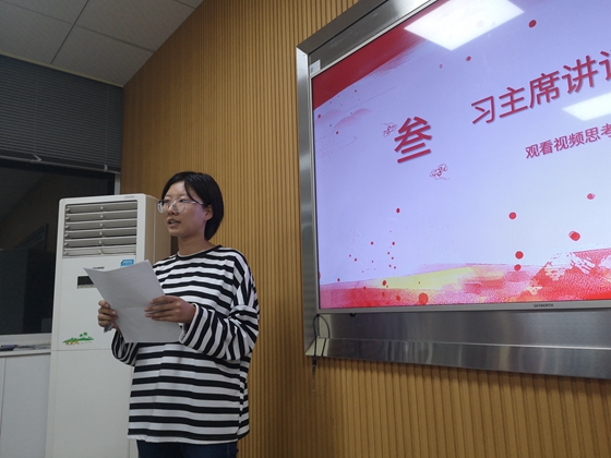 接着,由团支书韩璐来主题学习习近平总书记十一重要讲话精神分享。她谈到了国庆节的由来,国庆阅兵的意义,以及其所彰显的新时代赋予中华民族和中国人民的家国情怀和时代精神。