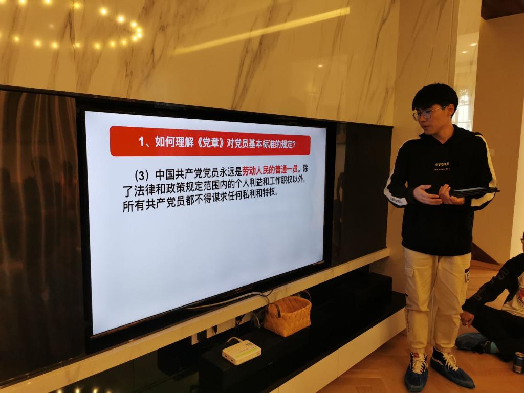 2019级土木教改班全体学生观看了疫情一线视频,并积极发表和交流观影感想。团支书张家明向同学们介绍了党员入党条件及流程,生活委员孙志炳就最新颁布的寝室条例进行分析讲解。班主任陈瑜对同学们近期的学习生活进行总结,对所取得的成绩给予高度肯定,同时也警醒全体教改班学生应该珍惜当下,不负韶华。