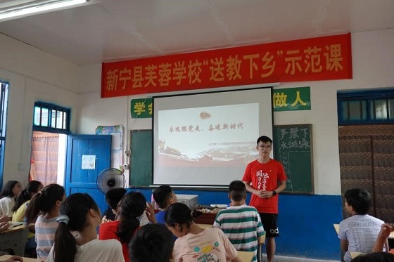 在太阳成集团tyc122cc入口乡村振兴驻村帮扶工作队的指导与坪山小学教职人员的协调下,7月18日,国际学院赴新宁县坪山村“三下乡”暑期社会实践团开展了坪山小学趣味课堂支教与爱心书屋赠书活动。