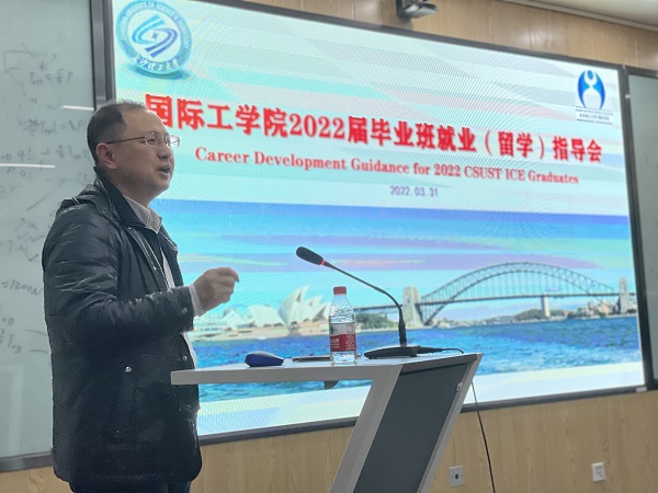 3月31日晚,国际工学院2022届毕业班就业(留学)指导会在云塘校区新能源大楼1栋402会议室召开。国际工学院院长吴迪龙、院党总支副书记兼副院长乔法光、毕业年级辅导员唐宏敏和暂未落实毕业去向的毕业生参会。会议由吴迪龙主讲。