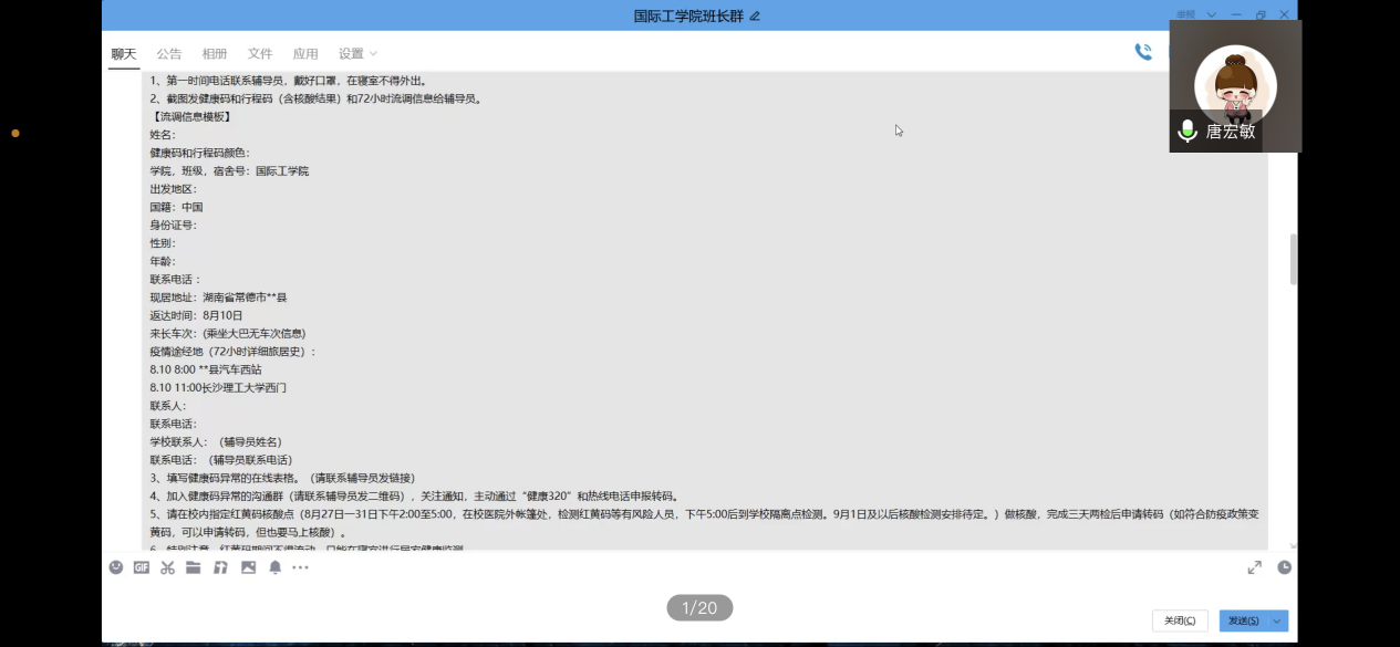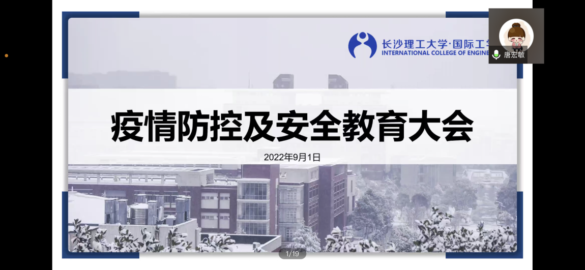 为加强学生安全教育,落实疫情防控常态化下的日常管理工作,9月1日晚,国际工学院召开疫情防控及安全教育线上会议。会议由学工办唐宏敏主持,学院党总支部副书记乔法光、全体辅导员及全院各年级班委参加。