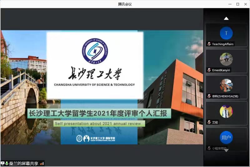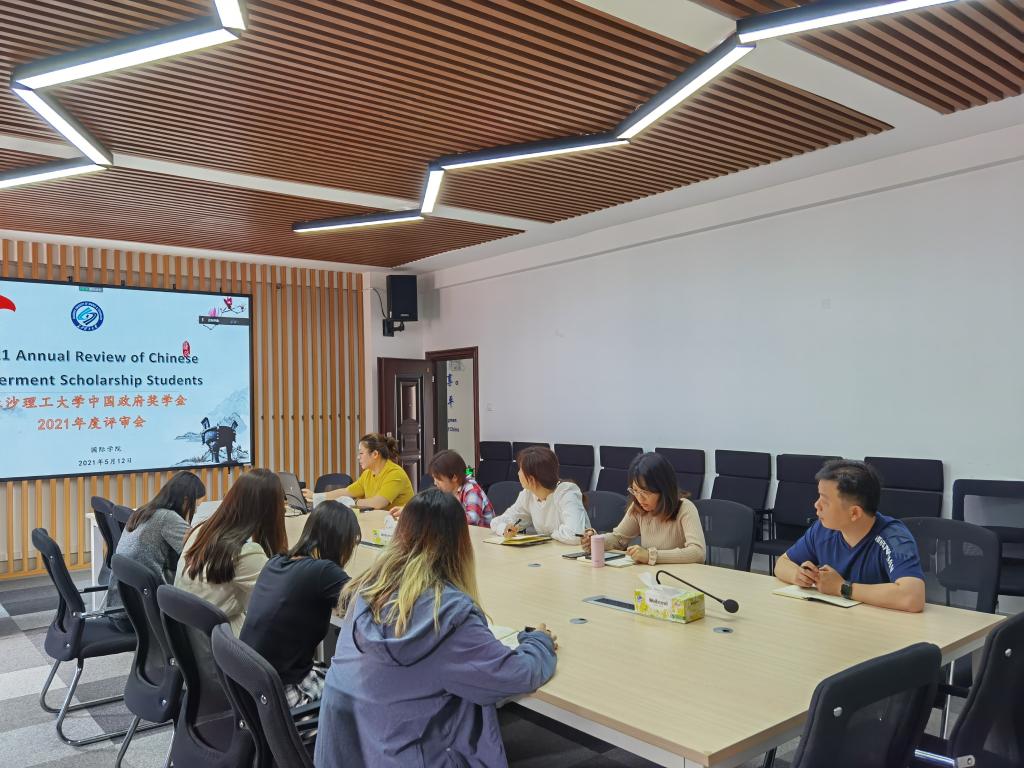 为保证中国政府奖学金生的质量,根据国家留学基金委要求,我校于5月11日至5月12日举行了2021-2022学年中国政府奖学金年度评审学生个人汇报会。国际学院副院长甘海鹰及留学生工作部、教学部相关人员出席汇报会,听取学生汇报。