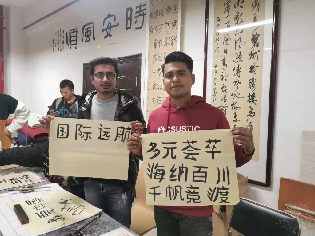 近日,我院成功组织了“走进书法,以墨会友—来华留学生中国书法艺术体验”,来自18个国家的30余名来华留学生参加了此次活动。留学生们泼墨挥毫,体验了一堂充满东方韵味的书法体验课。