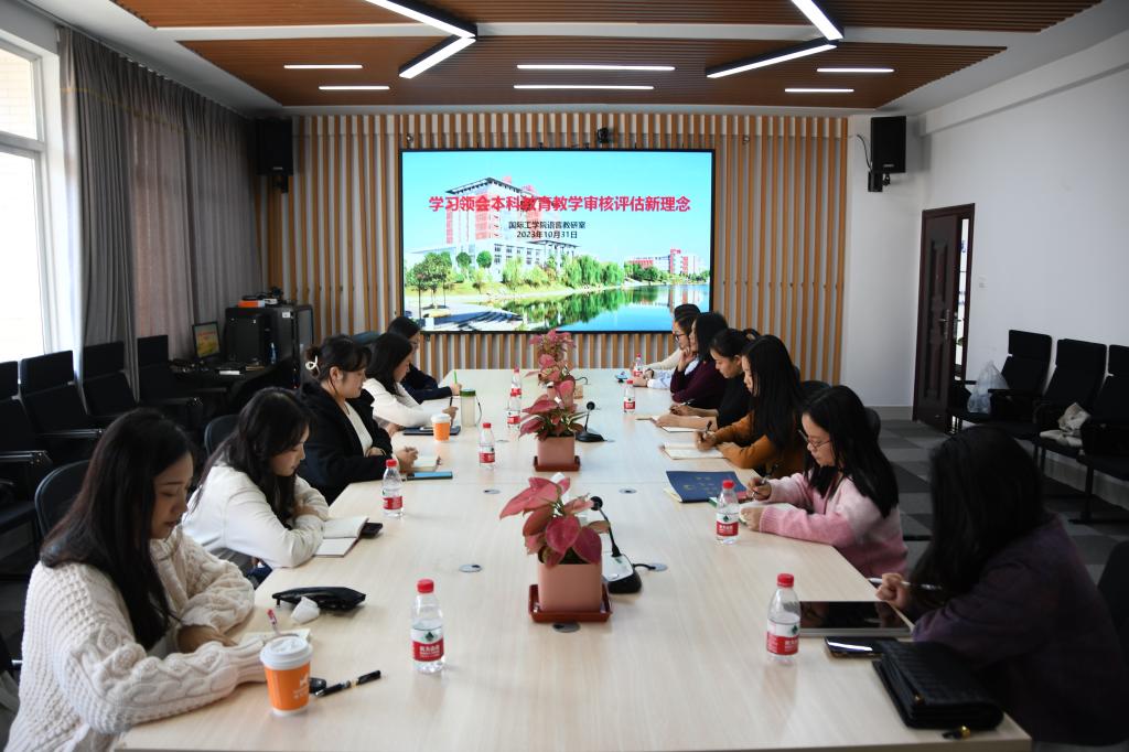 2023年10月31日下午3点,太阳成集团tyc122cc入口国际工学院语言教研室在新能源416室召开会议,学习领会本科教育教学审核评估新理念,以及讨论如何对课堂教学与相关材料进行整改。黄月华副院长、教务办余志主任及语言教研室全体教师参加了本次会议。