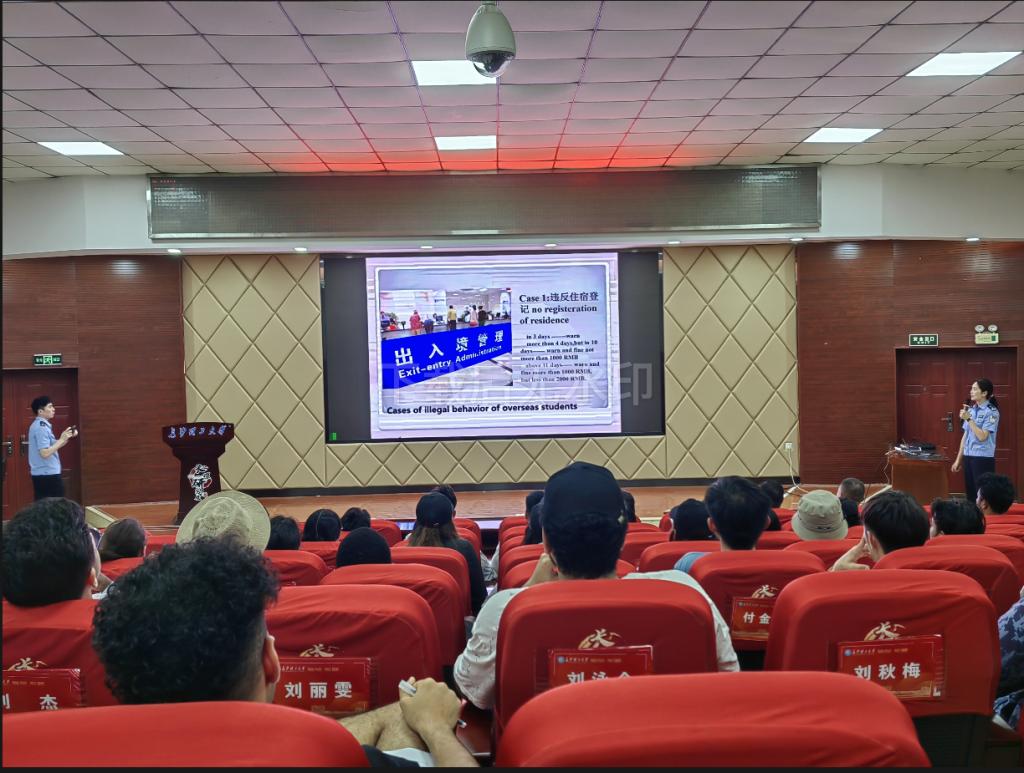 7月9日下午,我校邀请长沙市天心人境大队来校开展来华留学生法制安全教育讲座。