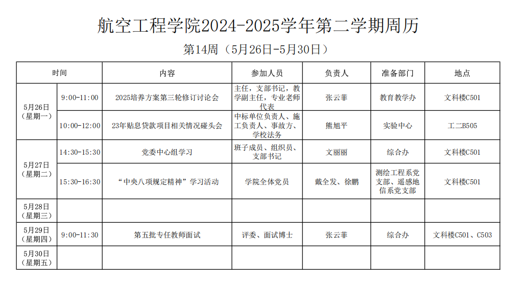 2024-2025学年第二学期周历(第14周)
