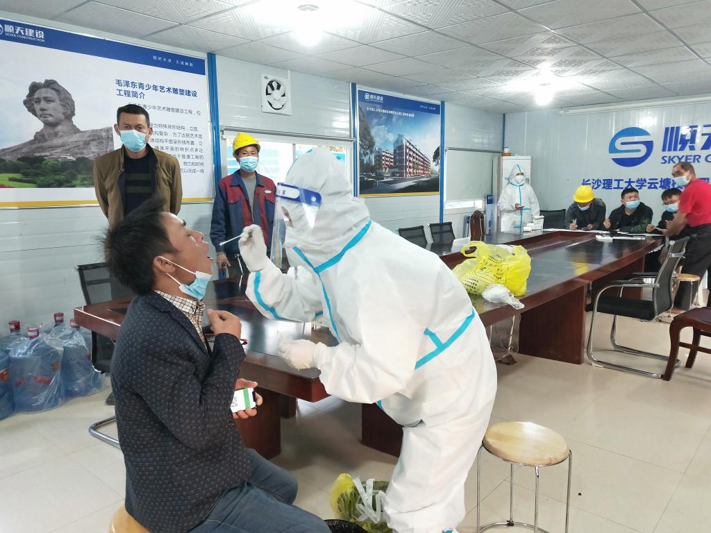 按照学校的具体部署,基建处党支部一方面通过加强联防联控,建立摸排人员疫情信息,每天向防控办进行工人情况健康报送,设置材料进场专用过渡区域,完做好送货司机、卸货人员的健康码检测和信息登记;同时和长沙市质安监联系,每天开展上工打卡,实时监测工人健康码及体温情况,一旦出现黄码及红码人员及时向学校报告,提高科学精准防控水平,优化疫情防控举措,使防控工作更有针对性。另一方面加强部门沟通协作,优化防疫流程。3月18日,在这轮疫情发生之初,处里通过联系校医院对校内所有工人进行第一次集体核酸检测,结果均为阴性,之后先后组织在建项目工人参加了学校的10次核酸检测,累计组织检测人员3000余人次。
