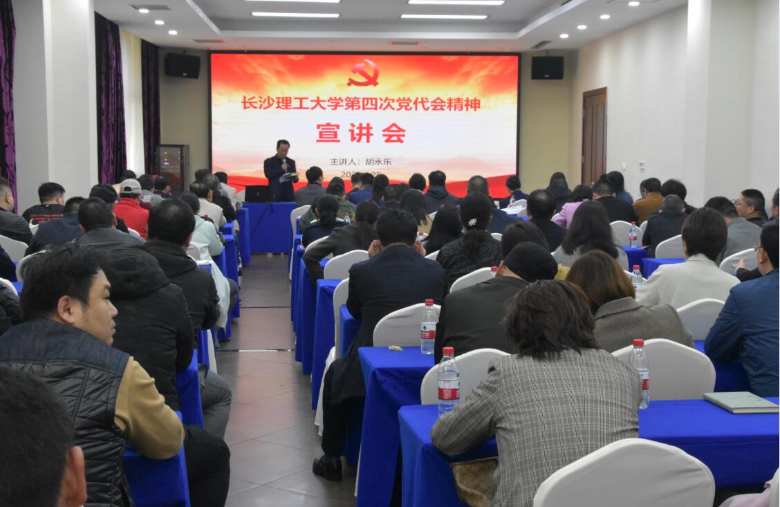4月28日下午,副校长胡永乐在国际学术交流中心云祥厅为后勤中心教职工宣讲学校第四次党代会精神。中心领导班子成员、各部门负责人、全体党员及入党积极分子共计110余人聆听了宣讲,宣讲会由中心党委书记王明彦主持。