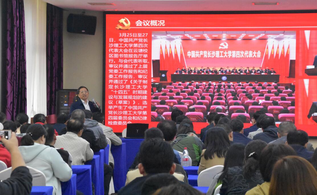 胡永乐从党代会会议概况、召开背景与意义、主要精神、如何贯彻落实四个方面展开宣讲。他指出,学校第四次党代会是在中国共产党百年华诞之际,在深入学习贯彻党的十九大和十九届二中、三中、四中、五中全会精神和习近平新时代中国特色社会主义思想,全面总结“十三五”,科学谋划“十四五”,决胜建成“百强大学”,实现高质量发展的关键时刻召开的一次重要大会,明确了今后五年直至2035年改革发展的指导思想、总体目标、主要任务和重点工作,进一步统一了思想、明晰了方向、汇聚了智慧、坚定了信心。