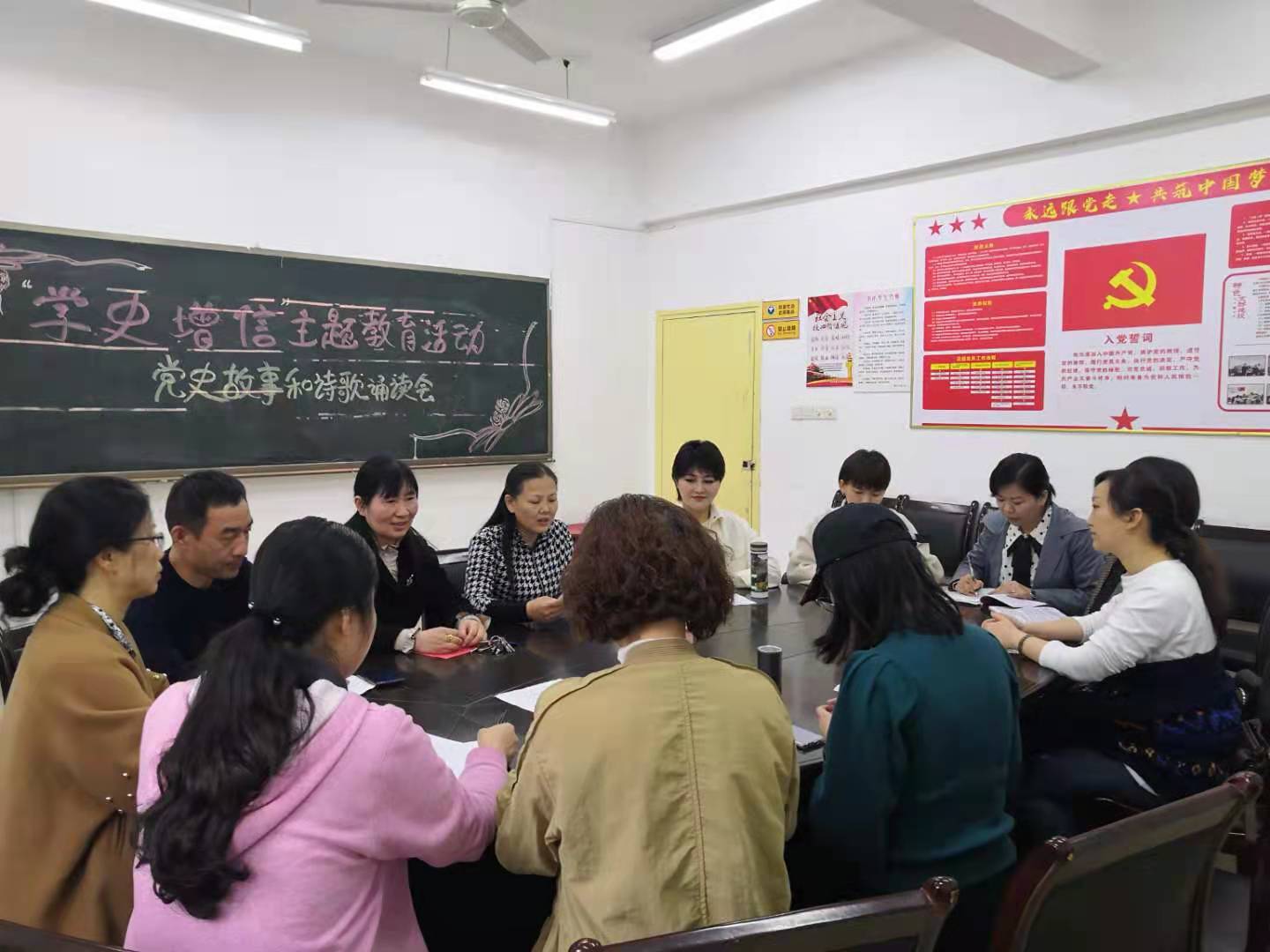 4月27日,子校幼儿园支部在党员活动室开展党史学习教育第二专题“学史增信”主题教育活动。此次活动以讲党史故事和朗诵革命诗歌的形式进行,积极分子和群众代表也参加了活动。